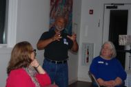 The Raging Grannies began and ended the evening’s events with songs written for the occasion, and everyone present joined them in a finale of "We Shall Not Be Moved."